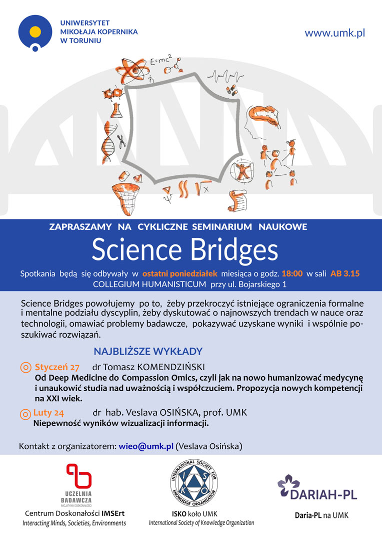 Co ciekawe, DARIAH-PL jest współorganizatorem seminarium "Science Bridges", którego celem jest 'przekroczenie istniejących ograniczeń formalnych i mentalnych podziału dyscyplin, aby dyskutować o najnowszych trendach w nauce oraz technologii...'.