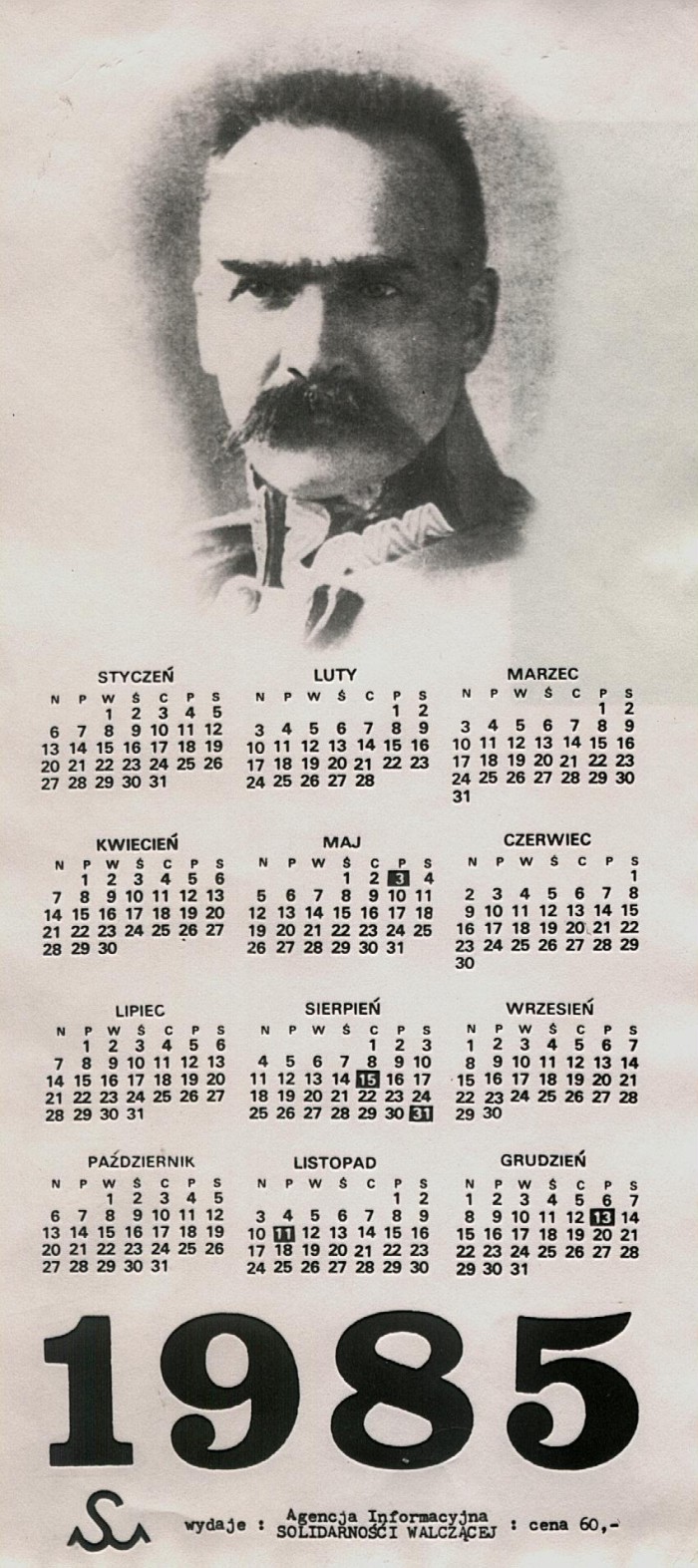 Przykłady kalendarzy wydawanych w podziemiu przez "Solidarność" - lata 80.