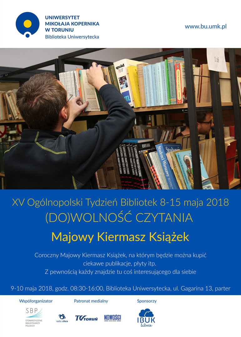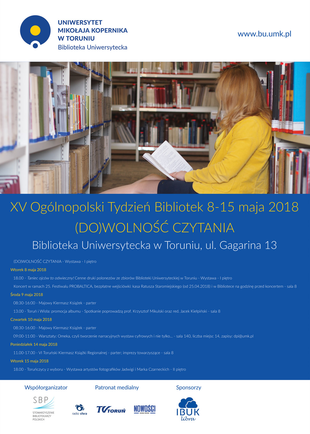 14 maja 2018 r., poniedziałek, na parterze oraz na terenie przed wejściem głównym do Biblioteki Uniwersyteckiej w Toruniu